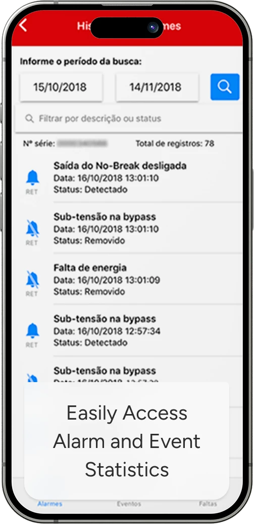 Notifications, historical data, and reports for each battery with parameters collected in real time.