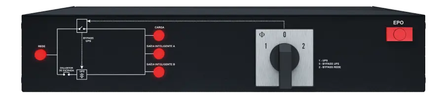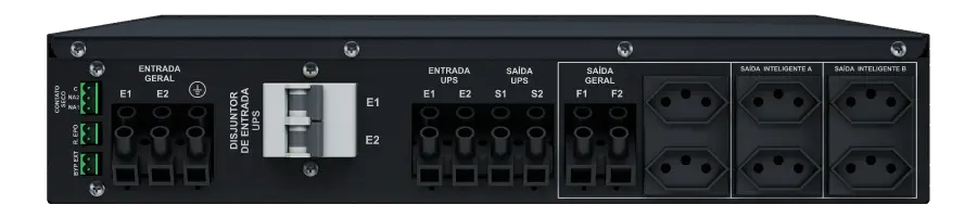 Tomadas que acionam o desligamento seletivo de cargas;|Viabiliza a remoção do nobreak para eventual manutenção, sem que as cargas sejam desligadas;|Para desligamento de emergência.